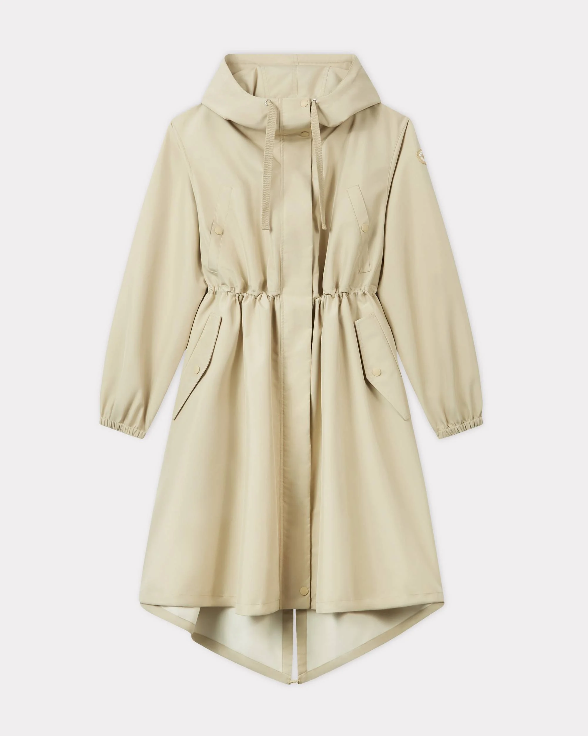 This windbreaker features a tonal 'BOKE FLOWER 2.0' logo on the sleeve, as Nigo revisits the Boke flower in a minimalist version, brought to life in new seasonal beige. This piece can be worn loose or cinched at the waist thanks to the drawstrings, offering a versatile attitude. 'Boke Flower 2.0' long windbreaker. Functional details at cuffs and hood. Front zip opening and side pockets with flap and snap button. 'Boke Flower 2.0' drawstring to adjust hood and classical drawstring to adjust waist. 'Boke Flower 2.0' badge at sleeve. Product Reference: FF52OU1429NB.11 SIZE & FIT The model is 175 cm tall and is wearing size S. Back length at 114 cm. COMPOSITION & CARE Made in China 100% polyester Do not bleach Do not dry-clean Do not iron Line drying in the shade Do not tumble dry Hand wash Very mild professional wet-cleaning