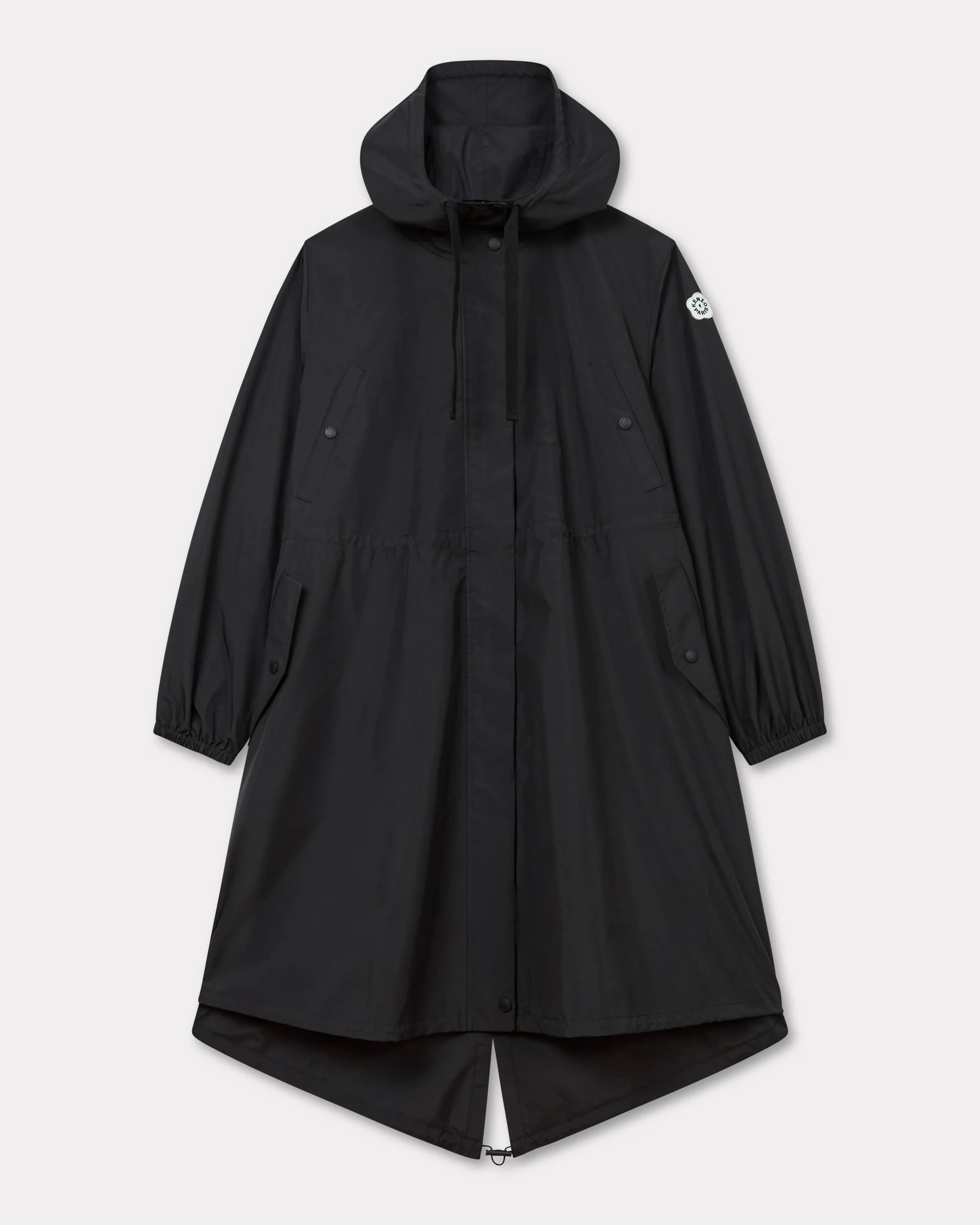 This windbreaker features a tonal 'BOKE FLOWER 2.0' logo on the sleeve, as Nigo revisits the Boke flower in a minimalist version, brought to life in new seasonal beige. This piece can be worn loose or cinched at the waist thanks to the drawstrings, offering a versatile attitude. 'Boke Flower 2.0' long windbreaker. Functional details at cuffs and hood. Front zip opening and side pockets with flap and snap button. 'Boke Flower 2.0' drawstring to adjust hood and classical drawstring to adjust waist. 'Boke Flower 2.0' badge at sleeve. Product Reference: FF52OU1429NB.99 SIZE & FIT The model is 175 cm tall and is wearing size S. Back length at 114 cm. COMPOSITION & CARE Made in China 100% polyester Do not bleach Do not dry-clean Do not iron Line drying in the shade Do not tumble dry Hand wash Very mild professional wet-cleaning