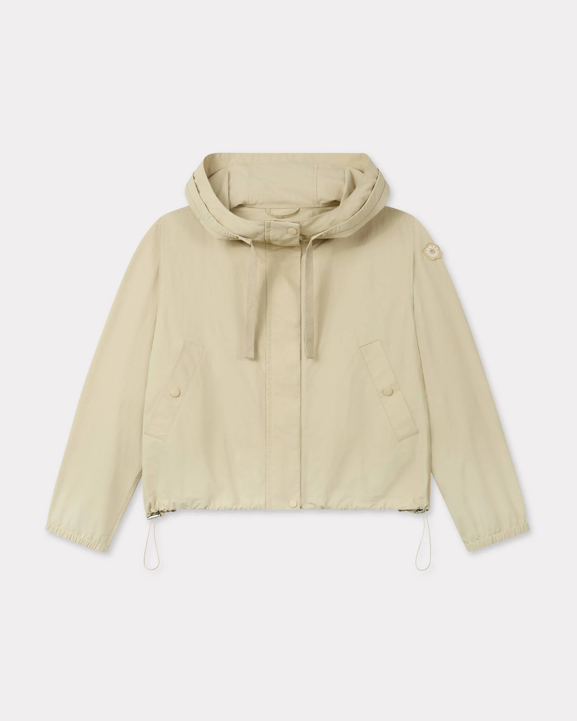 This short-cut windbreaker features a new tonal 'BOKE FLOWER 2.0' logo on the sleeve, brought to life in seasonal beige. Made from water-repellent nylon, its unlined fabric gives it a fine, lightweight feel, meaning it can be worn as an overlay. 'Boke Flower 2.0' short windbreaker. Water-repellent nylon. Functional details as cuffs and hood, double front closure with zip and snaps. Side pockets with flap and snap button. Straps to adjust hood and bottom. 2-ways zip. 'Boke 2.0' badge at sleeve. Product Reference: FF52OU1419NF.11 SIZE & FIT The model is 175 cm tall and is wearing size S. Back length at 60 cm. COMPOSITION & CARE Made in China 100% nylon Do not bleach Do not dry-clean Do not iron Line drying in the shade Do not tumble dry Hand wash Very mild professional wet-cleaning