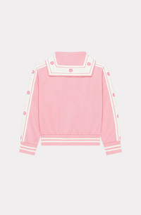 With its blend of different styles, this sweatshirt offers an original look with streetwear vibes. The stripes down each sleeve and ribbed hems evoke the Ivy League college look, while the sailor collar adds a touch of marine workwear style. A minimalist 2.0 version of the 'BOKE FLOWER' adorns the chest, sleeves and collar, symbolising the KENZO brand. Interlock piqué sweatshirt. Long sleeves. Sailor collar. 'BOKE FLOWER 2.0' badge embroidered on the chest. Contrasting stripes down the side embroidered with the 'BOKE FLOWER'. Striped ribbed hems. Zip fastening. COMPOSITION & CARE Made in Portugal 55% polyester, 43% viscose, 2% elastane