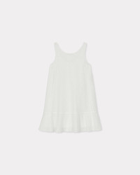'KENZO Boke Flower Broderie Anglaise' dress. Sleeveless. Ruffle at bottom. Cotton lining. 2 ladder stitch band from top to bottom, at front and at back. SIZE & FIT The model is 175cm tall and wears a size S. Back length at 79 cm. COMPOSITION & CARE Made in Madagascar 91% cotton, 9% polyester