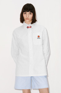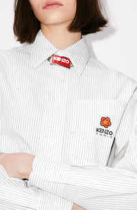 This oversized striped shirt features an embroidered 'BOKE FLOWER', the iconic Japanese flower found throughout Nigo's recent collections, on the chest. The oversized cut contrasts with the classic style for a casual appeal. Pair this design with a necklace and shorts for a bold urban look. Oversized poplin shirt. Long sleeves. Shirt collar. 'BOKE FLOWER' embroidered on the chest. All-over stripes. Patch pocket on the chest. Button fastening. COMPOSITION & CARE Made in Tunisia 100% cotton