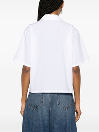 Boke Flower cropped shirt Kenzo's Boke flower speaks to founder Kenzo Takada's Japanese roots. The iconic motif adorns the chest of this cotton shirt, cut to a cropped design. Highlights - White - Cotton - Poplin texture - Embroidered logo at the chest - Spread collar - Front button fastening - Short sleeves - Chest patch pocket - Straight hem - Cropped Imported Composition Cotton 100% SIZE & FIT Model measurements Height 5 ft 11 in(1.8 m) Bust/Chest 31.49 in(80 cm) Hips 35.82 in(91 cm) Waist 24.8 in(63 cm) Measurement SLEEVE LENGTH 9.44 in(24 cm) LENGTH 22.44 in(57 cm) BUST 40.15 in(102 cm) Shoulder Width 18.11 in(46 cm) FittingInformation Designed for a boxy fit, intended for a loose fit throughout Made from a midweight non-stretch fabric This piece fits true to size – take your usual size Washing instructions Machine Wash