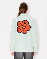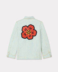 'Boke Flower' embroidered workwear jacket. Stone bleach wash on a jacquard striped fabric. Japanese denim. Contrasted buttonhole at front. Contrasted topstitches and loop at inside collar. 'KENZO Paris' engraved buttons. KENZO embroidery at chest and 'Boke Flower' embroidery at back. Product Reference: FF62DV2616F4.DT SIZE & FIT The model is 175 cm tall and is wearing size S. Back length at 75 cm. COMPOSITION & CARE Made in Tunisia 100% cotton Mild professional dry-cleaning in: hydrocarbons Do not tumble dry