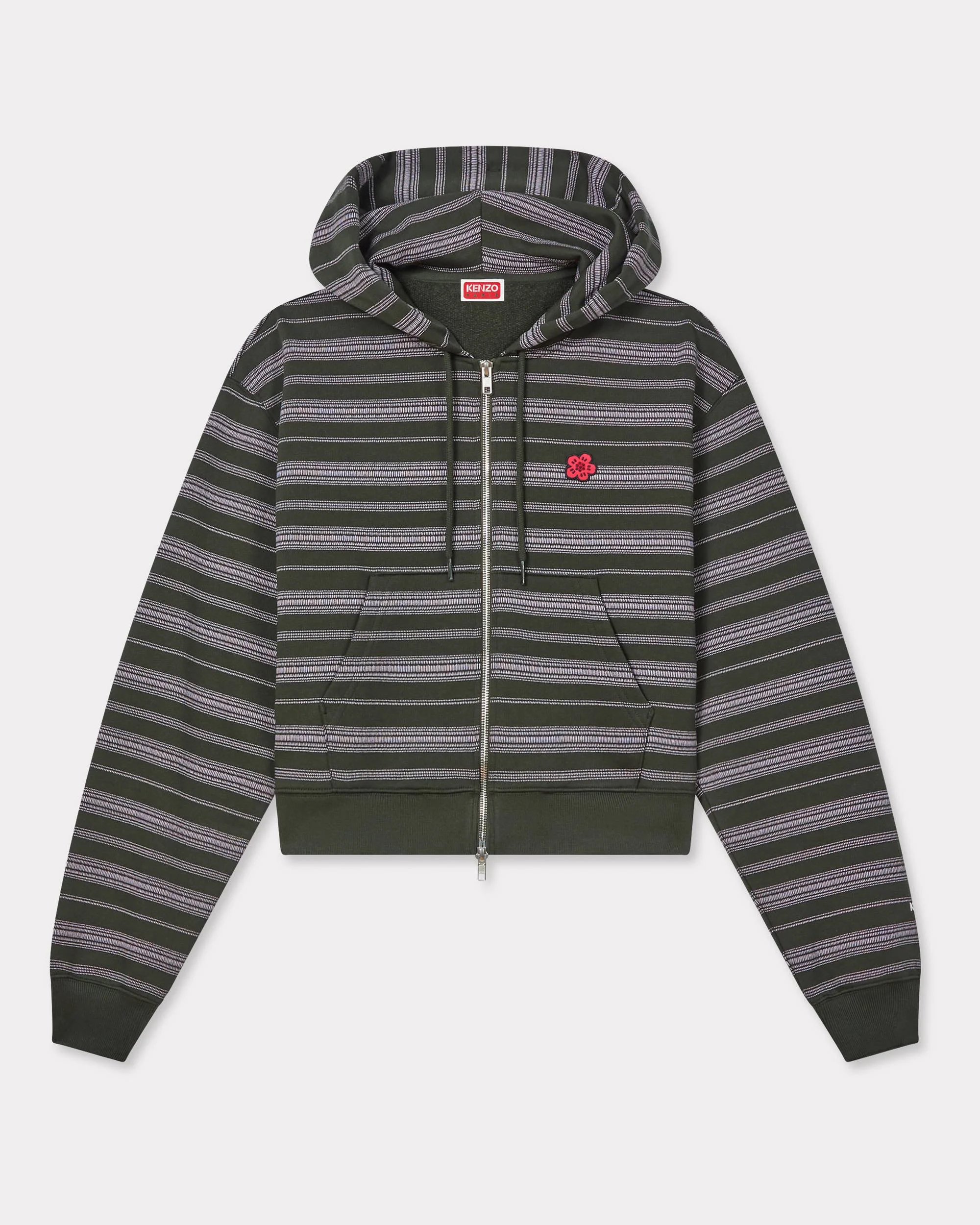 'Boke Flower' stripes short zip-up hoodie. Printed striped molleton. Two-way zip. Ribbed cuffs and hem. Kangaroo pocket. ‘Boke Flower’ embroidery at chest. ‘KENZO Paris’ embroidery on the sleeve. Product Reference: FF62HO1504MS.51 SIZE & FIT The model is 175 cm tall and is wearing size S. Short fit. COMPOSITION & CARE Made in Portugal 100% cotton Do not bleach 30°C very mild fine wash Very mild professional wet-cleaning