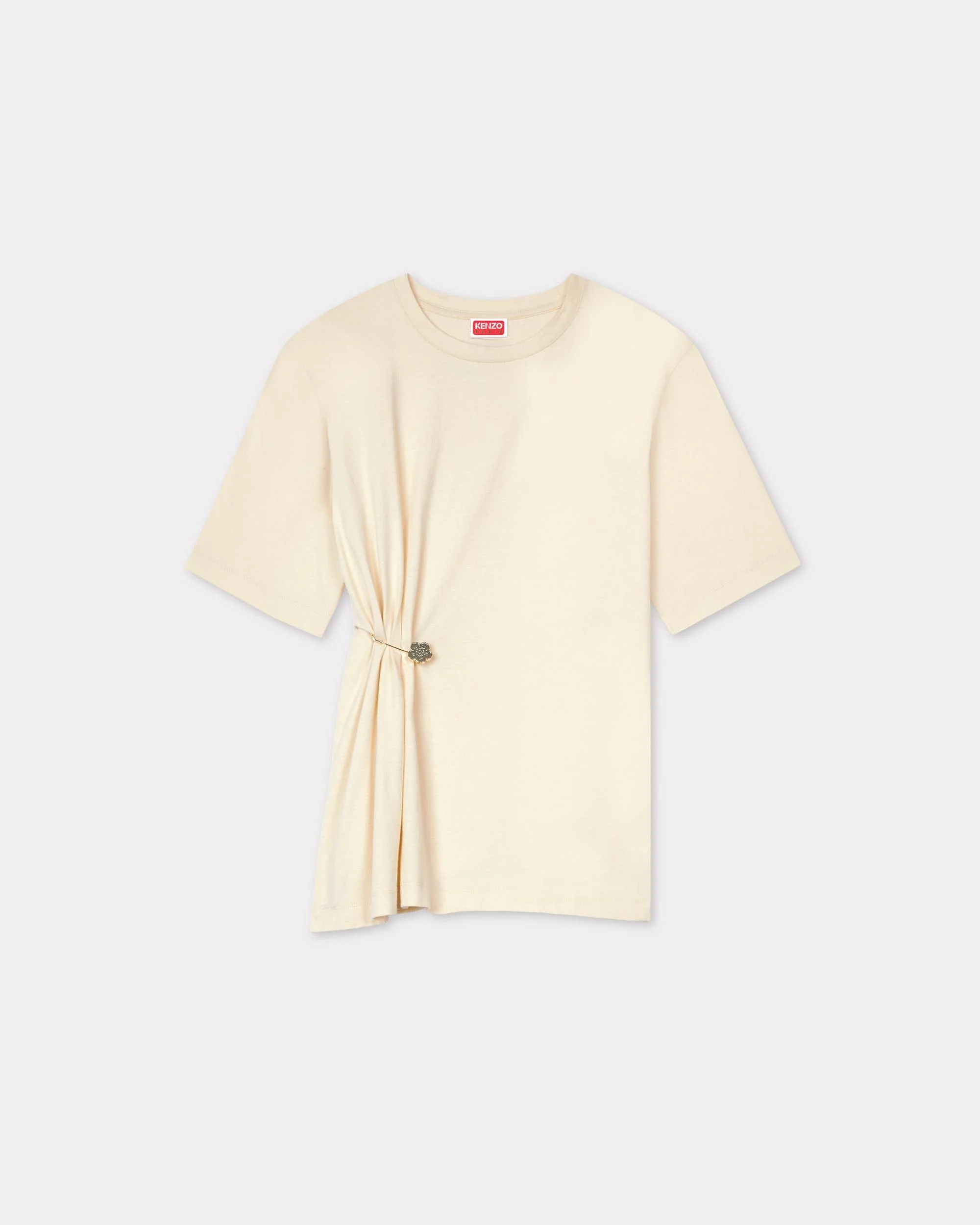 'Boke Flower' pin drap detail T-shirt. Soft Jersey. New ‘Boke Flower’ removable gold safety pin at collar. 'KENZO Paris’ embroidered at back below the collar. Product Reference: FF62TS3514SG.04 SIZE & FIT The model is 175 cm tall and is wearing size S. Loose fit. COMPOSITION & CARE Made in Portugal 100% cotton Do not bleach Do not dry-clean Do not tumble dry Mild professional wet-cleaning