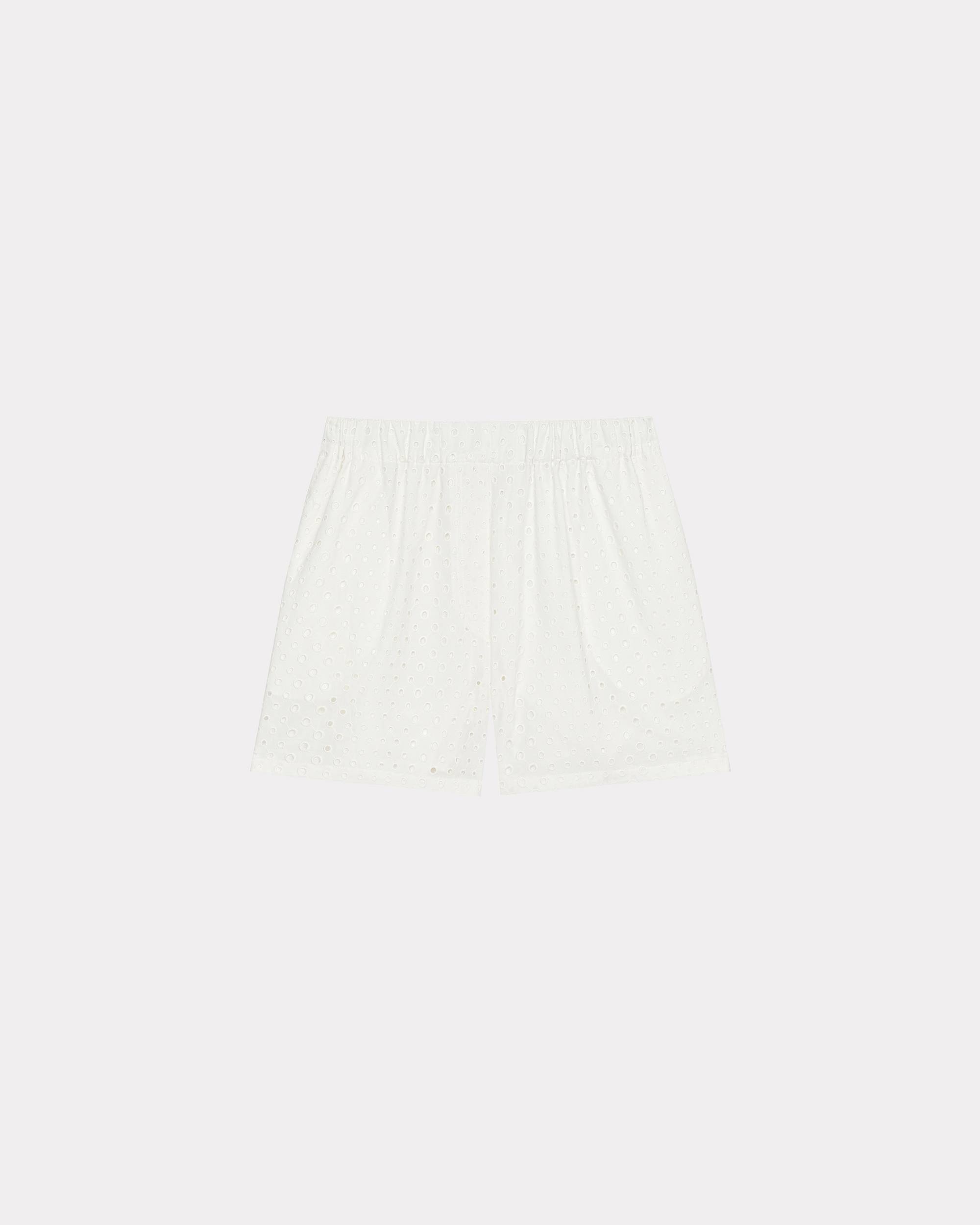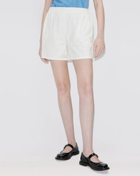 DESCRIPTION As comfortable as they are elegant, these shorts feature a tone-on-tone polka-dot pattern and lend a refined touch to any casual feminine look. The pattern is composed of broderie anglaise. These shorts are fully lined, ensuring the fabric is not transparent. They also feature several pockets, adding to the laid-back feel of the relaxed cut. Broderie anglaise shorts. Side pockets. 1 back pocket. Lined. Elasticated waist. SIZE & FIT The model is 177 cm tall and wears a size S.