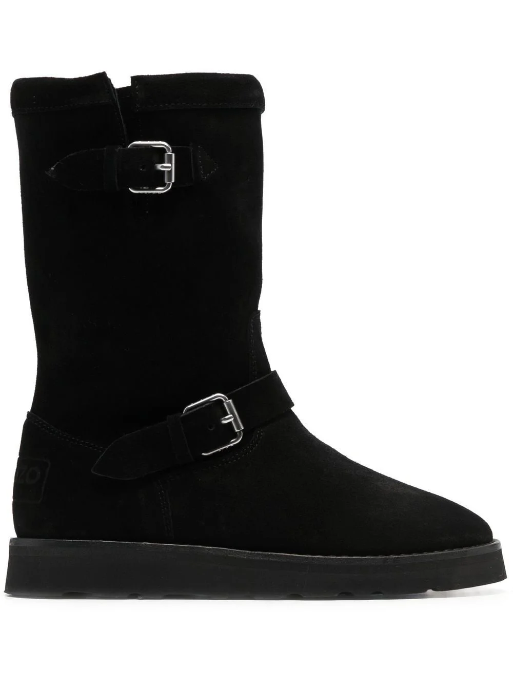 buckle-detail suede boots jet black calf suede shearling lining side buckle fastening round toe chunky rubber sole Imported Composition Suede 100% SIZE & FIT Measurement HEEL 1.18 in(3 cm) Sole height 0.78 in(2 cm) HEIGHT 9.44 in(24 cm)