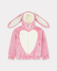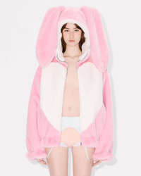 Bunny hooded jacket. Fake fur. Bicolor ears and white belly at front. Full zip opening. Oversized shape and elastic at cuffs and bottom. Product Reference: FF62BL2439FW.32 SIZE & FIT The model is 175 cm tall and is wearing size S. Oversize fit. COMPOSITION & CARE Made in Bulgaria 80% acrylic, 20% polyester Do not bleach Mild professional dry-cleaning in: hydrocarbons Do not iron Line drying in the shade Do not tumble dry Do not wash Do not wet-clean