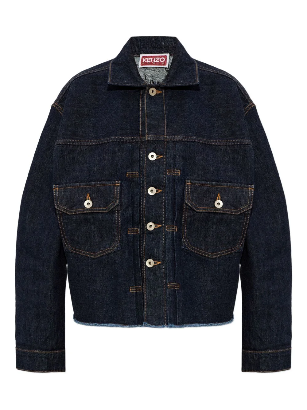 button embellished jacket Highlights - Dark blue - Embellished back - Front flap pockets - Button fastening - Frayed hem - Topstitching Imported Composition Cotton 100% Washing instructions Read Manufacturer Guidelines