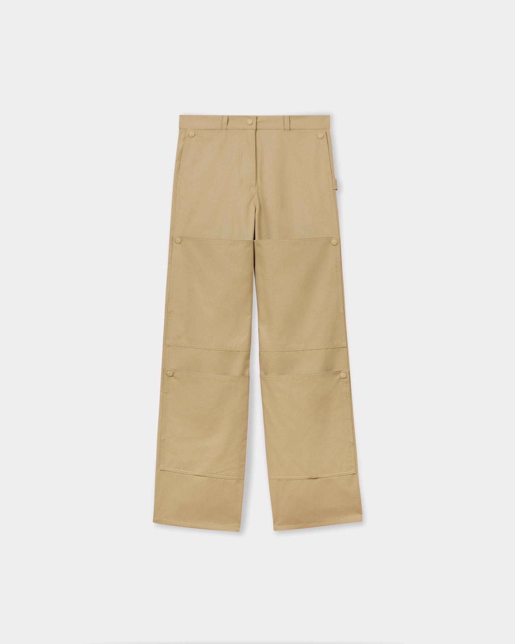 Cargo pants. Cotton ripstop. 4 patch pockets with snaps at front - that you can play with - and 2 patch pockets at back. Bicolor 'Kenzo Paris' label at back. Product Reference: FF52PA1009DL.11 SIZE & FIT Loose fit.The model is 175 cm tall and is wearing size S.Leg length at 112 cm. COMPOSITION & CARE Made in Bulgaria 100% cotton Do not bleach Mild professional dry-cleaning in: hydrocarbons Iron at low temperature Line drying in the shade Do not tumble dry 30°C very mild fine wash Very mild professional wet-cleaning