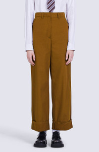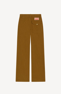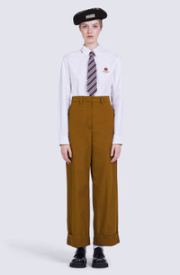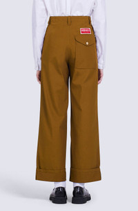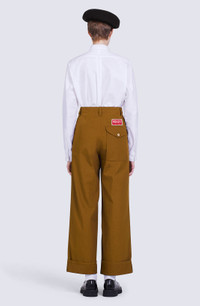 These wide trousers are an incarnation of the urban cosy style that artistic director Nigo brings to this collection. The comfortable cut is combined with resistant ripstop cotton. Their minimalist look is enhanced by iconic details such as the KENZO Paris label and 'BOKE FLOWER' button. Wide trousers. Straight cut. KENZO Paris label at back. 'BOKE FLOWER' button on back pocket. 2 slant pockets at front. 1 back pocket with flap. Belt loops. Discreet fastening. SIZE & FIT Long relaxed cut. Mid-high waist. Length of leg: 109 cm. COMPOSITION & CARE Made in Romania 100% cotton