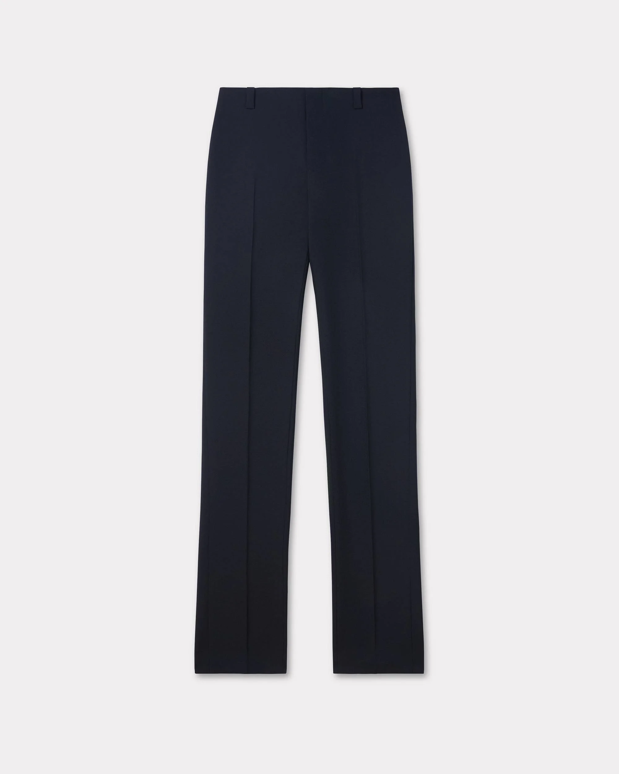 Cigarette pants in virgin wool. Classic closure with a zip and engraved button. Lining until the knee to be more comfortable. 2 seam pockets at side and 2 jetted pockets at back. Tonal KENZO Paris label at back. Product Reference: FE62PA0929GE.99 SIZE & FIT Regular waist Back length at 103 cm. The female model is 175 cm tall and is wearing size S. COMPOSITION & CARE Made in Romania 100% virgin wool Do not bleach Mild professional dry-cleaning in: hydrocarbons Iron at low temperature Line drying in the shade Do not tumble dry Do not wash Do not wet-clean