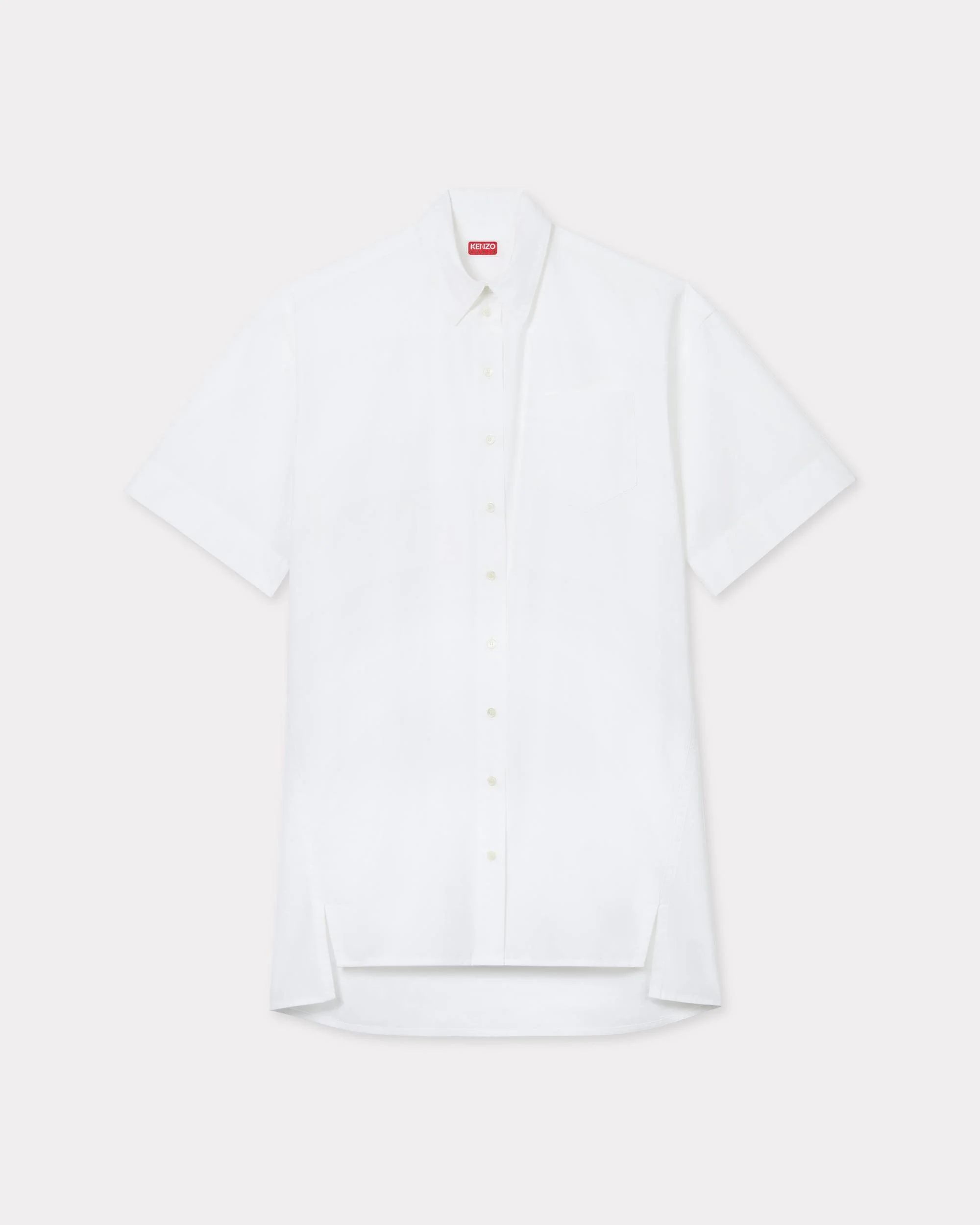 Cocoon short sleeve dress. Poplin cotton. Patch pocket at front and two seamed pocket at sides. Vent at sides. 'KENZO Paris' orange label under the back collar and 'KENZO Paris' engraved buttons. Product Reference: FF62RO4079LB.01 SIZE & FIT The model is 175 cm tall and is wearing size S. Loose fit. COMPOSITION & CARE Made in Tunisia 100% cotton 30°C very mild fine wash Very mild professional wet-cleaning