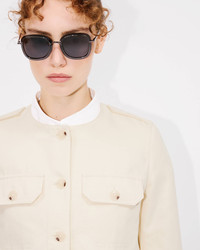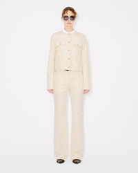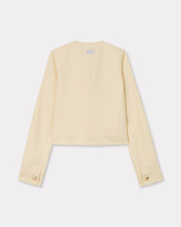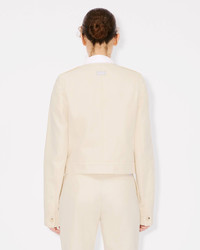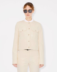 Collarless jacket in cotton. Shoulder tabs. 4 patch pockets at front and 2 jetted pockets at side. Tonal 'KENZO Paris' label at back and 'KENZO Paris' engraved buttons. Product Reference: FF52VE2579GA.04 SIZE & FIT The model is 175 cm tall and is wearing size S. Back length at 52 cm. COMPOSITION & CARE Made in Bulgaria 81% cotton, 19% linen Do not bleach Mild professional dry-cleaning in: hydrocarbons Iron at low temperature Line drying in the shade Do not tumble dry 30°C very mild fine wash Very mild professional wet-cleaning