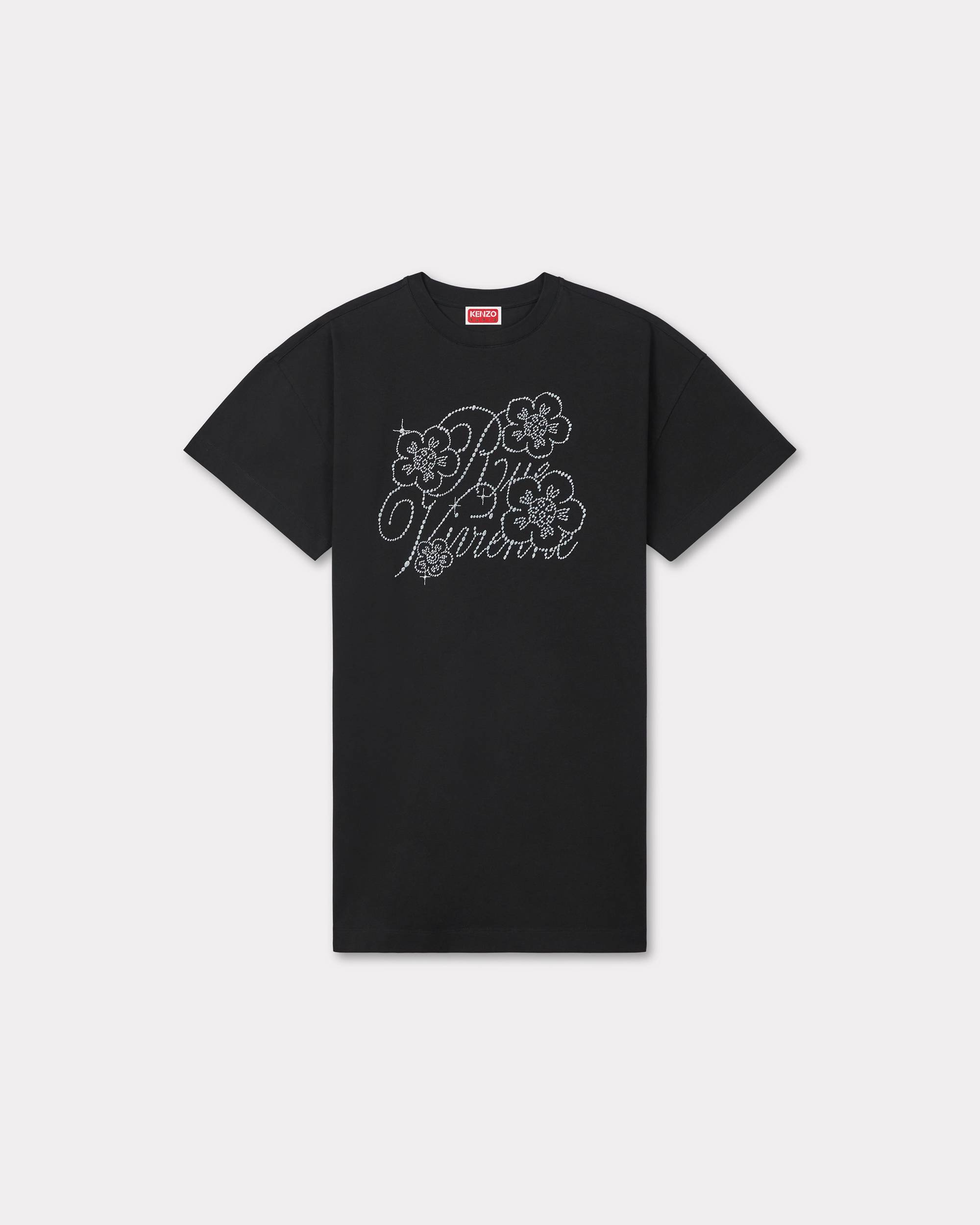 'KENZO Constellation' T-shirt dress. Soft Jersey. Lurex embroidered KENZO Paris at upper back. Product Reference: FE62RO7774SG.99J SIZE & FIT The model is 175 cm tall and wears a size S. Classic fit. COMPOSITION & CARE Made in Portugal 100% cotton Do not bleach Do not dry-clean Iron at low temperature Line drying in the shade Do not tumble dry 30°C mild fine wash Mild professional wet-cleaning