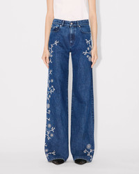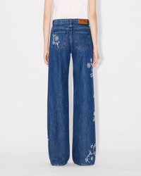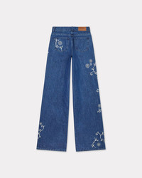 AYAME wide legs embroidered jeans . Double stone wash. Japanese denim. 'KENZO Paris' leather jacron at back. 'KENZO Marguerite' embroidery. Product Reference: FE62DP2176Y3.DS SIZE & FIT The model is 175 cm tall and wears a size S. Leg length : 110 cm. Wide fit. COMPOSITION & CARE Made in Portugal 100% cotton Do not bleach Mild professional dry-cleaning in: hydrocarbons Iron at low temperature Line drying in the shade Do not tumble dry 30°C very mild fine wash Very mild professional wet-cleaning