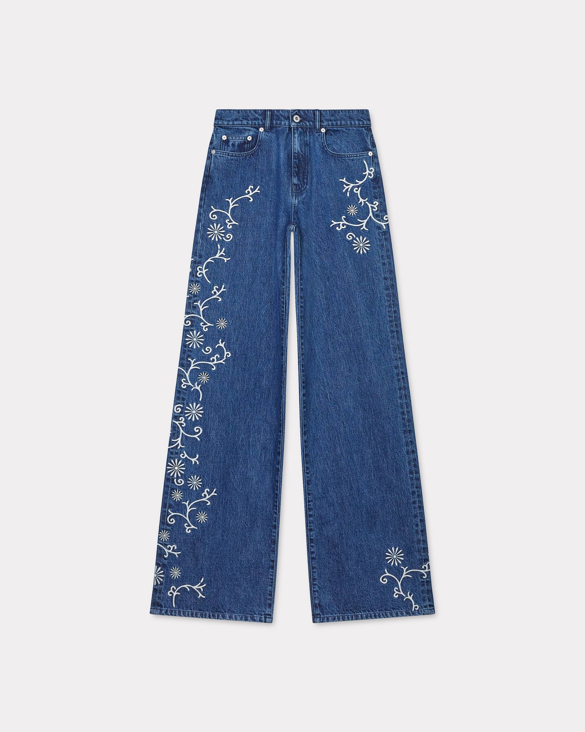 'KENZO Marguerite' AYAME wide legs embroidered jeans in japanese denim