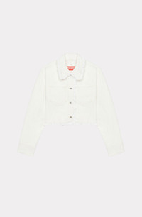 With this denim jacket, Nigo has transformed an old-fashioned work garment into an original and feminine piece. It is enhanced by broderie anglaise detailing for added charm. The metallic buttons bring an authentic touch. Cropped jacket made from Japanese Kaihara denim. Long sleeves with buttons cuffs. Classic collar. KENZO Paris tab at the back. 2 patch pockets at the front. Broderie anglaise trim at neckline, button placket and hem. Front button fastening. SIZE & FIT Short cut. COMPOSITION & CARE Made in Bulgaria 98% cotton, 2% elastane