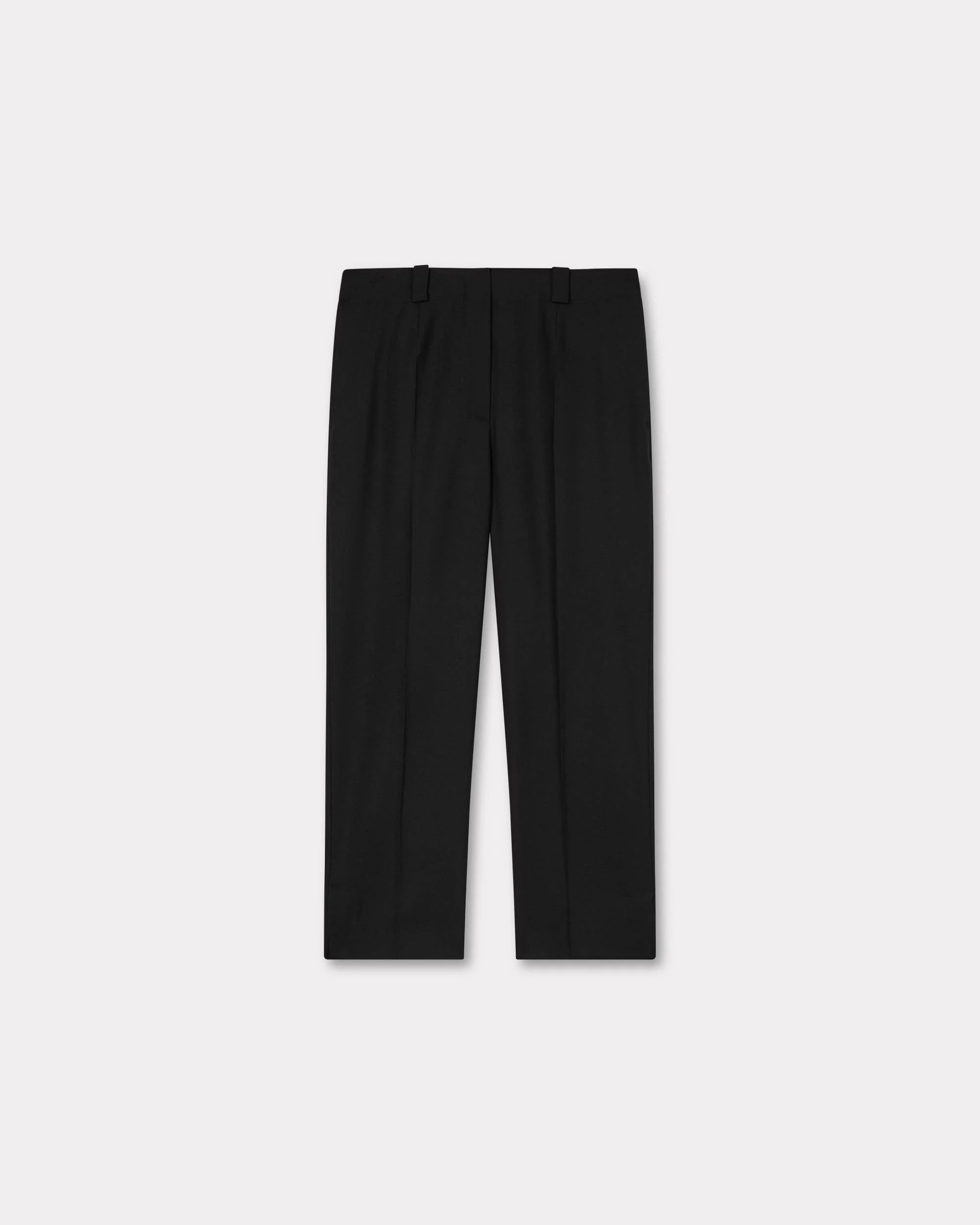 Cropped pants in virgin wool. Classic closure - with a zip and engraved button. 2 seam pockets at side and 2 jetted pockets at back. Small vent at back bottom. Tonal 'KENZO Paris' label at back. Product Reference: FF52PA0939RA.99 SIZE & FIT The model is 175 cm tall and is wearing size S. Leg length at 85 cm. Low waist. COMPOSITION & CARE Made in Romania 100% virgin wool Do not bleach Mild professional dry-cleaning in: hydrocarbons Iron at low temperature Line drying in the shade Do not tumble dry Do not wash Do not wet-clean