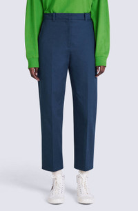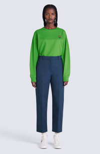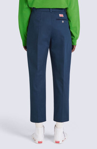 An essential piece for any feminine wardrobe, these cropped straight-cut trousers have a front pleat running the full length of the leg. A contrasting boke flower button, a subtle, poetic detail introduced to the collection by Nigo, appears just above the pleat on the back pocket. This piece is easy to style with different kinds of tops. Tailored trousers with mid-rise waist. Straight cut. Extended front pleat. 2 side pockets and 1 back pocket with contrasting boke flower button. Belt loops. Button fastening. SIZE & FIT Short length: 94 cm. Straight narrow legs. Mid-rise waist. The model is 176 cm tall and wears a size 36. COMPOSITION & CARE Made in Bulgaria 100% cotton