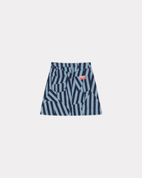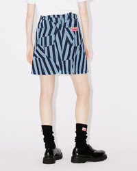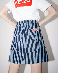 Nigo has reinterpreted the short Japanese denim skirt by taking inspiration from Kenzo Takada's archives and British pop culture. The result is this original piece, enhanced by an eye-catching striped pattern. Its five-pocket design presents a classic jeans look. Short KENZO Dazzle Stripe skirt made from Japanese denim. All-over KENZO Dazzle Stripe print. Paper KENZO tab at back. 3 front pockets. 2 patch pockets at back. Tone-on-tone stitching. Fastens at the front with a zip and button. SIZE & FIT High waist. Length of back: 46 cm. The model is 176 cm tall and wears a size S. COMPOSITION & CARE Made in Bulgaria 100% cotton