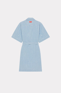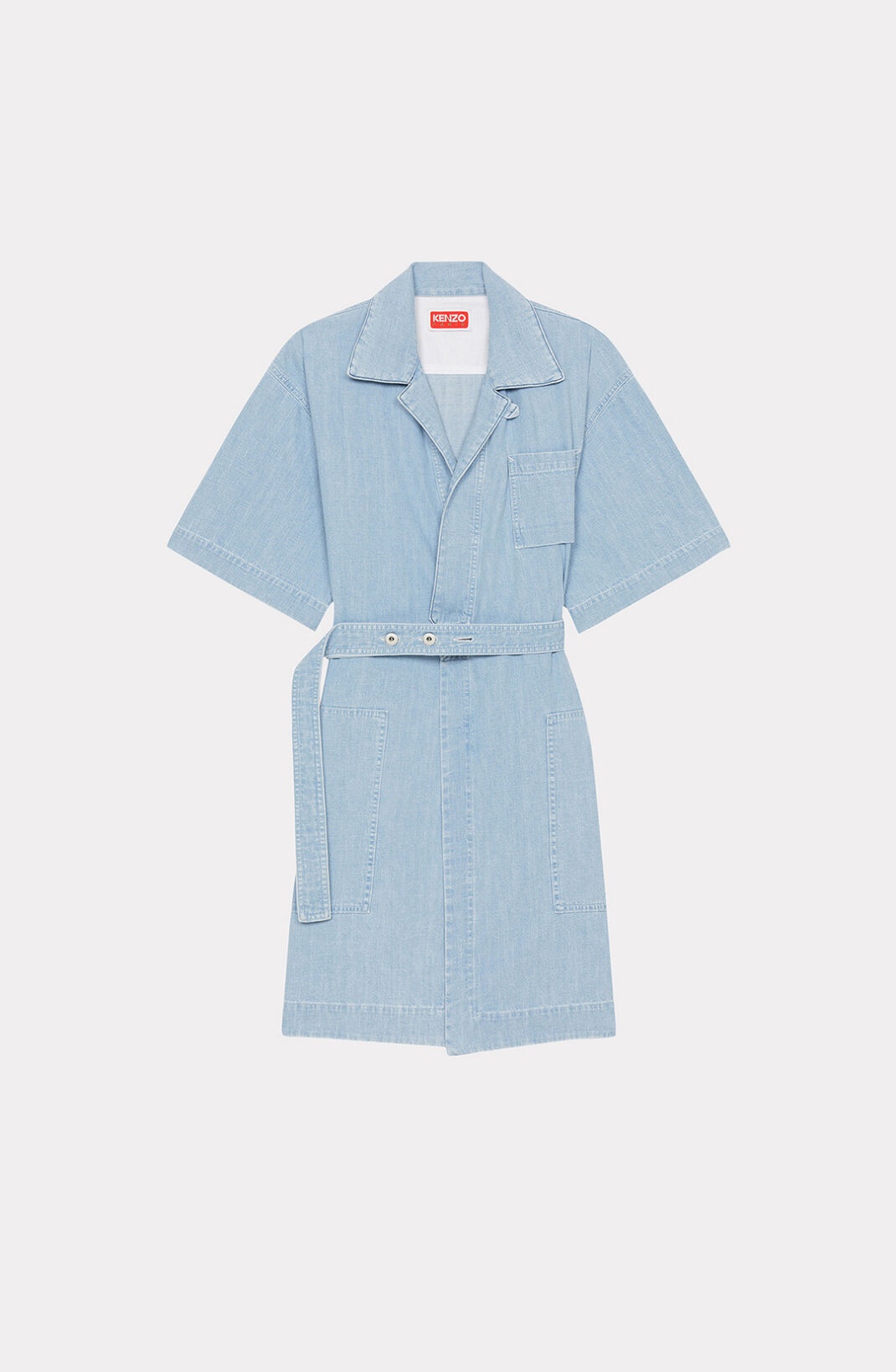 This denim wrap dress, the epitome of Nigo's 'real-to-wear' vision of fashion, is bound to be a popular new addition to casual summer wardrobes. The side pockets and adjustable belt make for a comfortable design. We also enjoy the feeling of freedom that comes from the short cut. Denim wrap dress. Long sleeves. Shirt collar. KENZO Paris label on the back. Patch pockets on the front. Adjustable belt. COMPOSITION & CARE Made in Tunisia 100% cotton