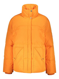 stand up-collar down jacket Highlights - Carrot orange - Front press-stud and zip fastening - Two front patch pockets - Ribbed cuffs - Drawstring hem Imported Composition Lining: Duck Down 90%, Wool 85%, Polyester 14%, Duck Feathers 10%, Elastane 1% Outer: Polyester 55%, Cotton 30%, Nylon 15%