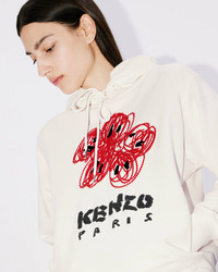 This hooded sweatshirt features Nigo’s iconic 'BOKE FLOWER' in the style of a sketch taking its inspiration from an old American tradition. In the 1950s, students used to draw on each other’s clothing at graduation ceremonies. The printed 'KENZO Paris' signature is textured to resemble arty embroidery. Soft, lightweight unbrushed fleece embroidered sweatshirt. Long sleeves. Hood with drawstring. 'KENZO Drawn Varsity' embroidery. Textured 'KENZO Paris' signature print. Pouch pocket. Product Reference: FE52SW1244MF.02 SIZE & FIT The model is 175 cm tall and is wearing size S. COMPOSITION & CARE Made in Portugal 100% cotton Do not bleach Do not dry-clean Iron at low temperature Flat drying Do not tumble dry 30°C mild fine wash Mild professional wet-cleaning