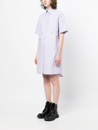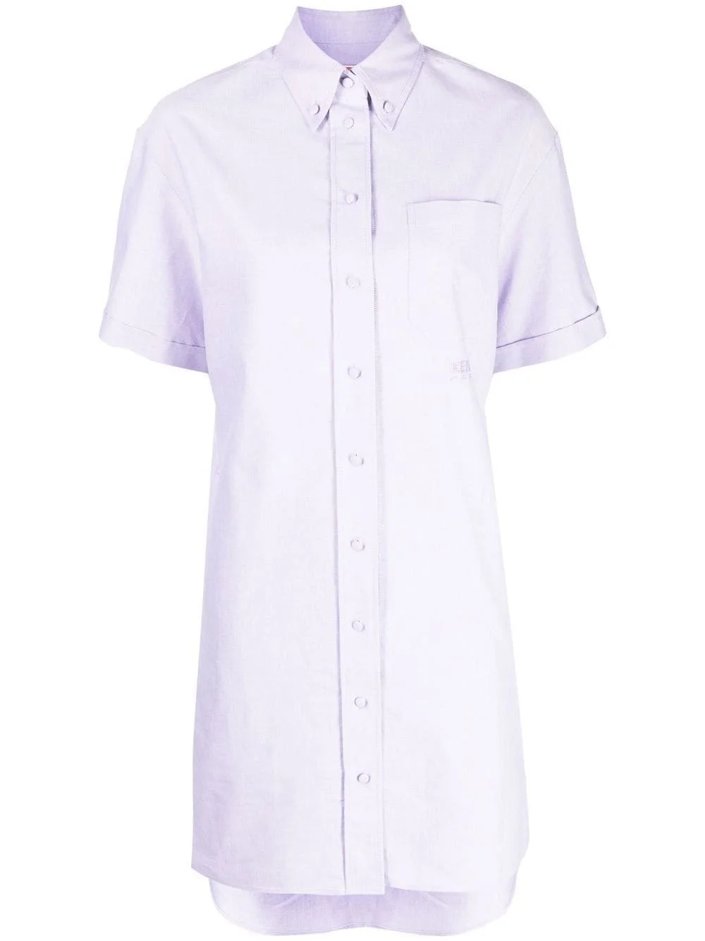boxy shirt dress Rendered in a pale purple hue, this short-sleeve shirt dress is cut to a boxy silhouette reflective of Kenzo's contemporary take on timeless styles. It boasts a tonal embroidered logo at the chest for a touch of understated branding. Highlights - Boxy shirt dress from kenzo featuring cotton, classic collar, front button fastening, long sleeves, chest patch pocket, curved hem and light purple. Imported Composition Cotton 100% SIZE & FIT Model measurements Height 5 ft 9 in(1.76 m) Bust/Chest 29.92 in(76 cm) Hips 35.82 in(91 cm) Waist 25.98 in(66 cm) FittingInformation This piece fits true to size. We recommend you get your regular size Cut for a loose fit Made with a mid-weight fabric Washing instructions Machine Wash