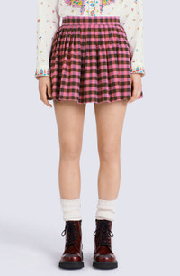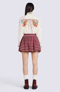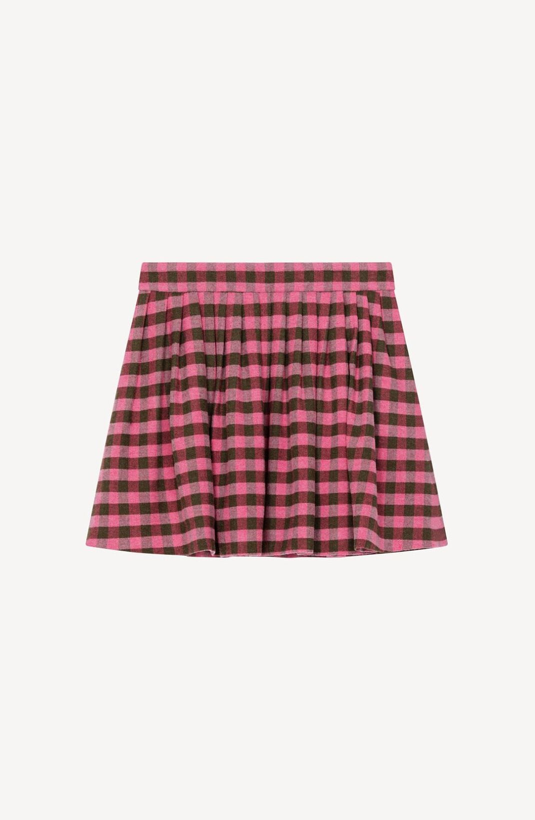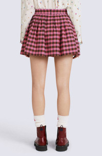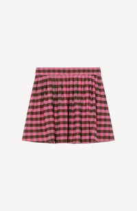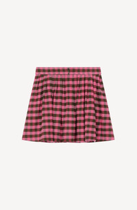This flared mini skirt epitomises the new collection's style, blending trends from across the generations. With its school-uniform inspired look, it brings a breath of fresh air and modern chic to your wardrobe. The colourful gingham pattern will add the perfect finishing touch to all this season's looks. Flared mini skirt in linen and wool blend. All-over gingham pattern. Concealed side zip fastening. SIZE & FIT Flared cut. Length at back: 38 cm. COMPOSITION & CARE Made in Madagascar 45% linen, 41% virgin wool, 14% polyamide
