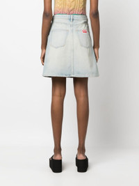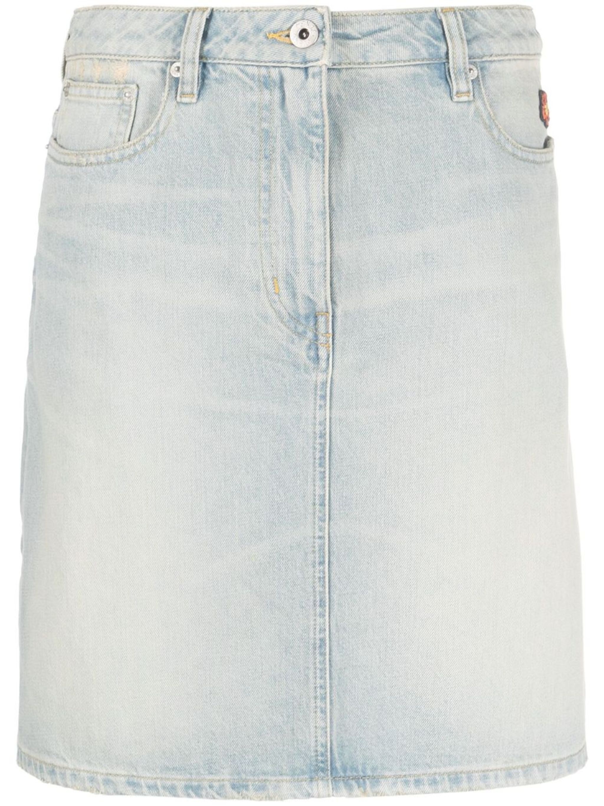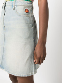 floral-embroidered denim skirt from KENZO featuring floral embroidery to the front, logo patch to the rear, belt loops, front button and zip fastening, classic five pockets, light blue, cotton and straight hem. Size & Fit Model Measurements: Height: 1.8 m Bust/Chest: 83.0 cm Hips: 92.0 cm Waist: 58.0 cm Model wears size 27 Fabric and Care Designer Style ID: FD62DJ2746B8 Designer Colour: DS MEDIUM STONE BLUE Composition: Outer: Cotton 100%; Lining: Polyester 35%, Cotton 65% Washing instructions: Machine Wash Made in Tunisia