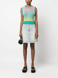 floral-embroidered denim skirt Highlights - Light blue - Cotton - Floral embroidery to the front - Logo patch to the rear - Belt loops - Front button and zip fastening - Classic five pockets - Straight hem Imported Composition Lining: Cotton 65%, Polyester 35% Outer: Cotton 100% SIZE & FIT Model measurements Height 5 ft 11 in(1.8 m) Bust/Chest 31.49 in(80 cm) Hips 36.61 in(93 cm) Waist 24.4 in(62 cm) FittingInformation This mini-length skirt is intended to be worn high on the waist Sturdy and hard-wearing, this denim piece offers no stretch This piece fits true to size – take your usual size Washing instructions Machine Wash