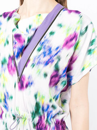 floral-print midi dress white/multicolour all-over floral print layered effect drawstring waist half front zip fastening short sleeves asymmetric hem Imported Composition Viscose 100% SIZE & FIT Model measurements Height 5 ft 11 in(1.8 m) Bust/Chest 28.34 in(72 cm) Hips 35.43 in(90 cm) Waist 23.62 in(60 cm) FittingInformation This piece fits true to size. We recommend you get your regular size Designed for a close fit at the bust and waist, but loose at the hip Made with a mid-weight non-stretch fabric Washing instructions Dry Clean Only