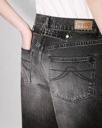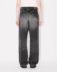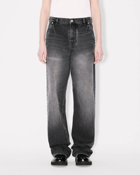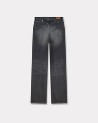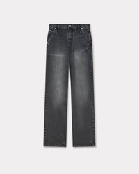 'Kenzo x Futura 2000' workwear pants. Stone bleach wash. Japanese denim. Flap at back to adjust the waist. 'Kenzo Paris' leather jacron at back, engraved buttons and Mont Fuji topstitches at back pockets. Product Reference: FF62DP2356C8.BS SIZE & FIT The model is 175 cm tall and is wearing size S. Leg length at 117 cm. COMPOSITION & CARE Made in Tunisia 99% cotton, 1% elastane Mild professional dry-cleaning in: hydrocarbons Iron at low temperature 30°C very mild fine wash Very mild professional wet-cleaning