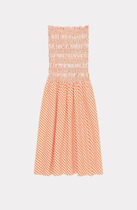 Presented at the runway for the new collection, this strapless dress with its all-over gingham pattern is an homage to the retro style of the 50s. The elasticated tube top creates a row of blurred stripes, contrasting with the flared skirt. Strapless cotton dress. Smocked top. All-over checked pattern. Flared skirt. SIZE & FIT Mid-length flared skirt cut. Length at back: 110cm. COMPOSITION & CARE Made in Madagascar 100% cotton