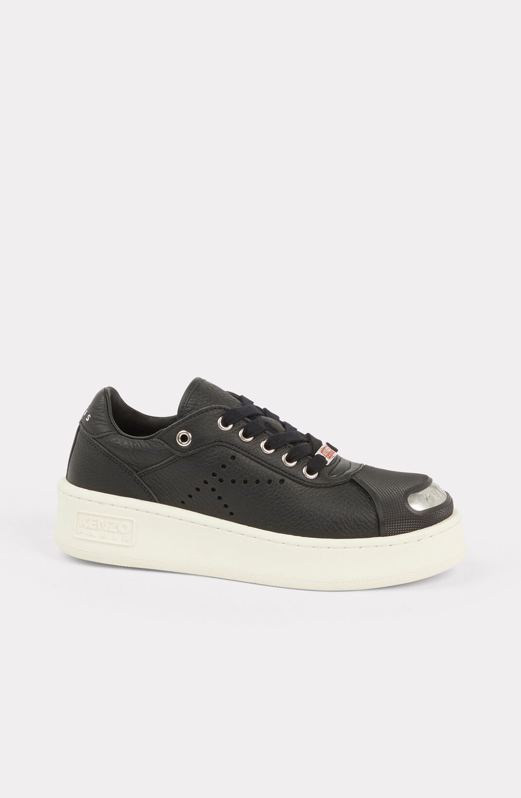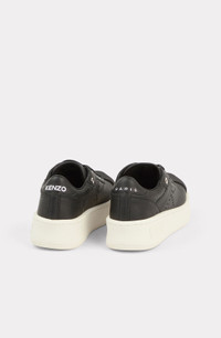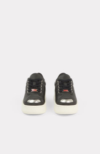 These leather trainers represent the style of the KENZOSMILE collection with their metallic toe printed with the KENZO logo. They also feature the eye-catching letter K on the side in openwork. The chunky sole offers a particularly on-trend look. Leather trainers. Metallic insert at toe with KENZO logo. Openwork K logo on side. Embroidered KENZO and PARIS logos on back tab. Embossed KENZO Paris logo on sole. Leather lined. 4 cm rubber sole. Lace-up fastening with a metallic KENZO Paris tab on laces. SIZE & FIT Height of sole: 4 cm. This model has a normal fit so choose your usual size. For half sizes, choose the size above. COMPOSITION & CARE Made in Portugal 100% cow leather