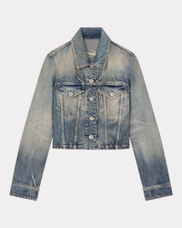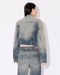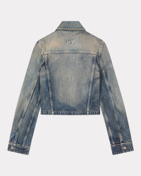 This Japanese denim trucker jacket is inspired by the iconic 'KENZO Jeans' collections from the 80s. Slightly cropped, it offers an on-trend streetwear look. We like the worn effect created by stone-washing the denim. Japanese denim trucker jacket. Long sleeves. Shirt collar. 'KENZO Paris' jacron on the back. Contrasting topstitching. 'KENZO Paris' engraved button fastening. SIZE & FIT Length at back: 49 cm.The model is 175 cm tall and wears a size S. COMPOSITION & CARE Made in Tunisia 100% cotton