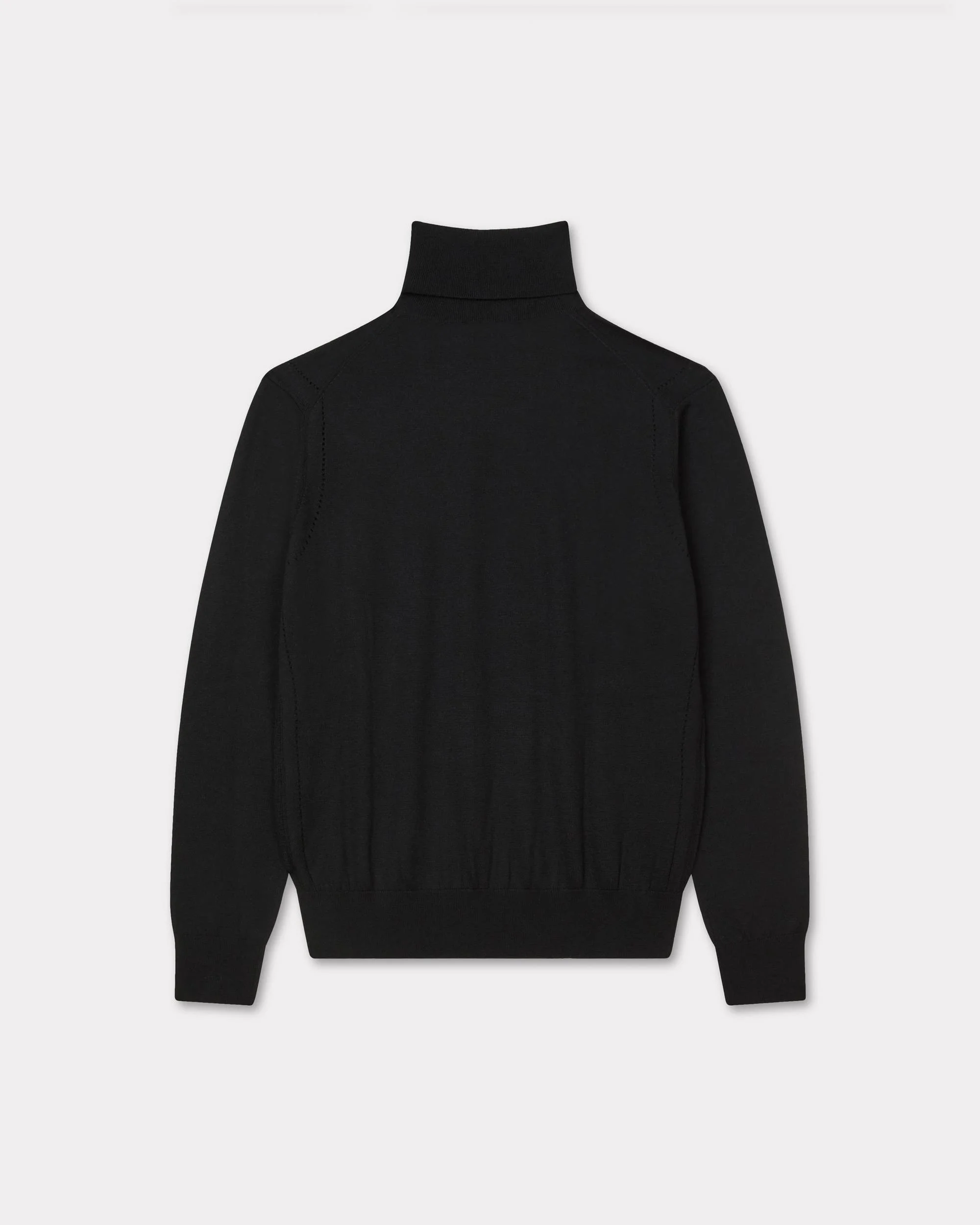 Jumper in merino wool and silk. High neck. Wool and Silk blend. Feminine open stitches details. Embroidered KENZO Archive signature at low left sleeve. Product Reference: FF62PU7313BI.99J SIZE & FIT The model is 175 cm tall and is wearing size S. Regular fit. COMPOSITION & CARE Made in China 75% wool, 25% silk Do not bleach Mild professional dry-cleaning in: hydrocarbons Do not tumble dry Hand wash Very mild professional wet-cleaning