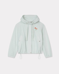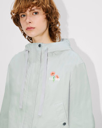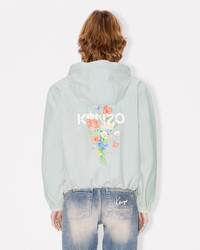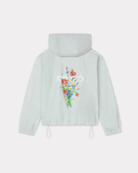 This absinthe green waterproof nylon windbreaker features a floral motif on the back inspired by Kenzo Takada's archive drawings: a tribute to his love of flowers. On the front, the piece is embellished with a 'Kenzo Paris' logo, also taken from the archives, which serves as discreet branding. 'KENZO Archive Bouquet' short windbreaker. Water-repellent nylon. Functional details as cuffs and hood, double front closure with zip and snaps. Side pockets with snap button. Straps to adjust hood and bottom. 2-ways zip. KENZO print at chest & KENZO logo with seasonal graphism at back. Product Reference: FF62OU1419NC.45A SIZE & FIT The model is 175 cm tall and is wearing size S. Back length at 60 cm. COMPOSITION & CARE Made in China 52% cotton, 48% nylon Do not bleach Do not dry-clean Do not iron Do not tumble dry Hand wash Very mild professional wet-cleaning