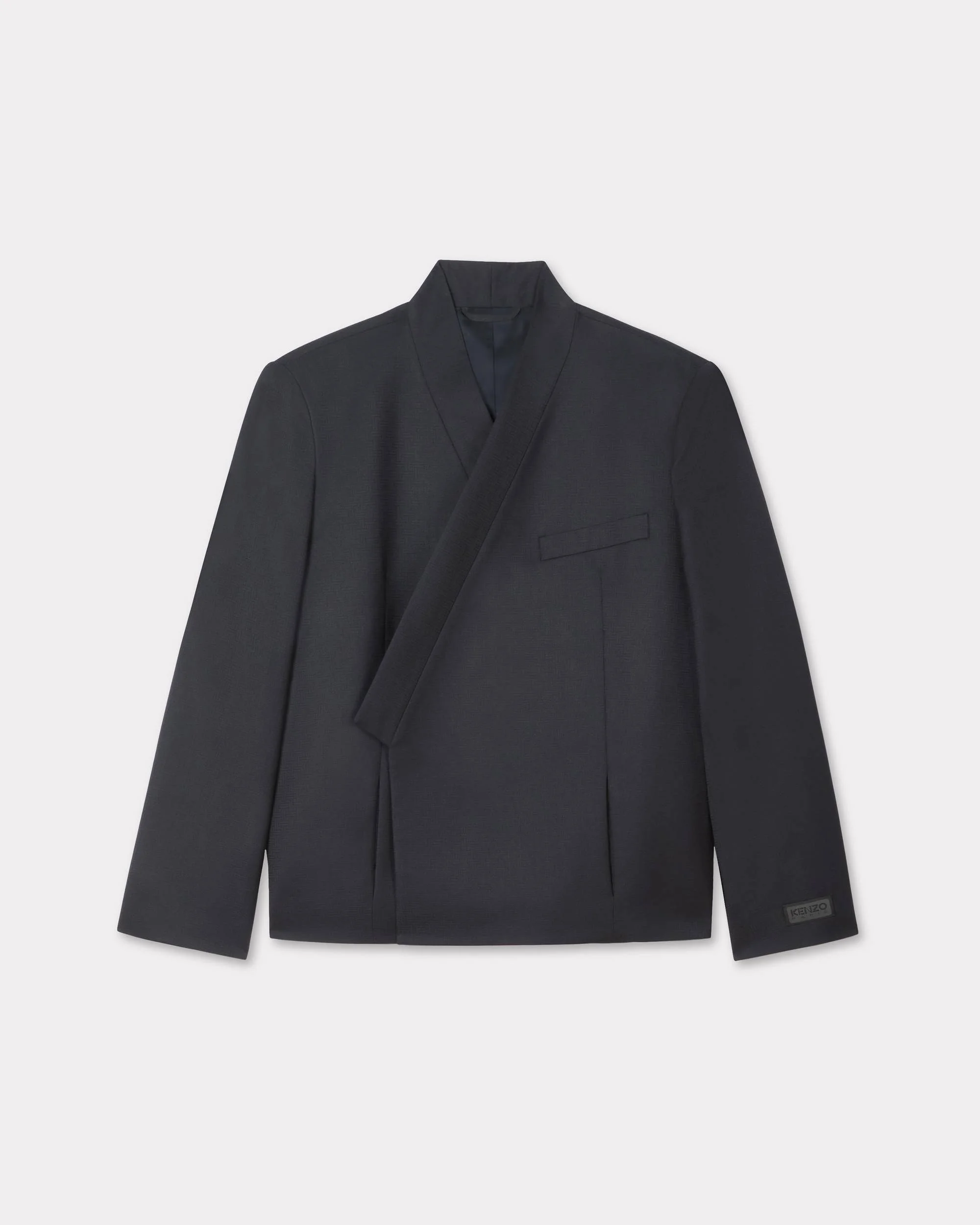 'KENZO Weave' kimono blazer. Jacquard wool. 2 jetted pockets and 1 welt pocket at chest. Inside pocket with one with button closure. Double-breasted closure. Tonal 'KENZO Paris' label at sleeve and 'KENZO Paris' engraved buttons. Product Reference: FF62VE2659ID.79 SIZE & FIT The model is 175 cm tall and is wearing size S. Back length at 69 cm. COMPOSITION & CARE Made in Portugal 100% virgin wool Iron at low temperature Line drying in the shade