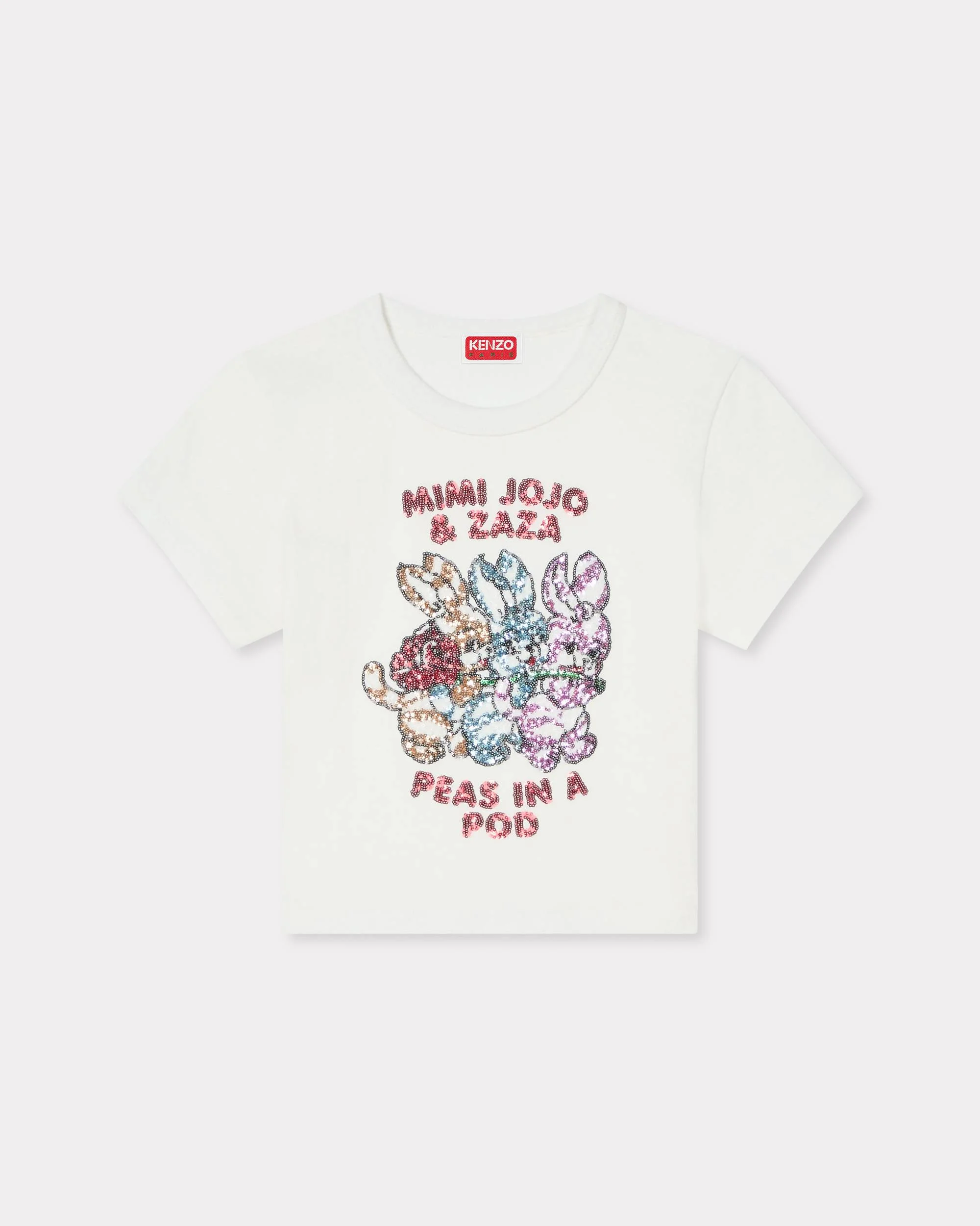 'KENZO Cartoon' embroidered T-shirt. Single Jersey for a comfortable feel & transeasonal weight. Front placed sequins embroidered graphic. Kenzo Archive signature embroidered at low back. Product Reference: FG52TS0064SK.02 SIZE & FIT The model is 175 cm tall and is wearing size S. Classic fit. This item fits true to size. Take your usual size. COMPOSITION & CARE Made in Portugal 100% cotton Do not bleach Do not dry-clean Iron at low temperature Line drying in the shade Do not tumble dry 30°C very mild fine wash Very mild professional wet-cleaning