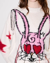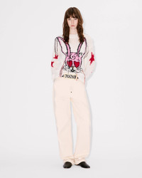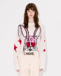 Inspired by the Autumn/Winter 2025 fashion show, this jumper has a bold grungy look with a little twist of imagination. Knitted in alpaca wool, this piece features Luke the rabbit, the season's iconic character. Textured fringes accentuate the piece's graphic style, while a logo embroidered in satin stitch on the back under the neck, adds a subtle signature to the design. 'KENZO Cartoon' jumper. Hairy wool alpaca. Intarsia knitting, play on open & closed stitches, random fringes. Embroidered seasonal branding at back, below the collar. Product Reference: FF62PU7323BK.03 SIZE & FIT The model is 175 cm tall and is wearing size S. Regular fit. COMPOSITION & CARE Made in Italy 50% polyamide, 50% alpaca Do not bleach Mild professional dry-cleaning in: hydrocarbons Do not iron Flat drying in the shade Do not tumble dry Hand wash Very mild professional wet-cleaning