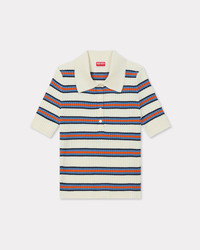 This striped knit polo features the 'KENZO Coast Lines' print, inspired by retro beachwear for a summery look. This cotton knitted piece stands out for its comfortable texture and vintage-inspired graphic look, offering a modern take on the classic polo and designed for a relaxed summer. Buttons bearing the 'KENZO Paris' logo and a label with the new orange 'KENZO Paris' logo add a subtle touch. 'KENZO Coast Lines' knitted polo. Cotton. Branded ‘KENZO Paris’ buttons. ‘KENZO Elephant Logo’ label at back below the collar. Product Reference: FF62TO6003CD.02 SIZE & FIT The model is 175 cm tall and is wearing size S. COMPOSITION & CARE Made in Turkey 78% cotton, 20% polyamide, 2% elastane Mild professional dry-cleaning in: hydrocarbons Do not tumble dry Mild professional wet-cleaning
