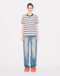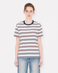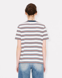 This T-shirt offers a new take on the summer wardrobe with its 'KENZO Coast Lines' print, a nod to 19th-century beachwear where stripes were predominant. Featuring a colourful graphic pattern, this piece has a retro feel which is enhanced by a contrasting ribbed collar. Made from a new lightweight, breathable cotton-linen blend, this T-shirt is effortlessly comfortable for summer. A tone-on-tone 'KENZO Paris' logo is discreetly embroidered on the chest, adding an elegant, understated finish to the piece. 'KENZO Coast Lines' loose T-shirt. Cotton Linen. Tonal ‘KENZO Paris’ embroidered on the chest. Product Reference: FF62TS3504SM.02 SIZE & FIT The model is 175 cm tall and is wearing size S. Loose fit. COMPOSITION & CARE Made in Portugal 70% cotton, 30% linen Iron at low temperature Line drying in the shade 30°C mild fine wash Mild professional wet-cleaning