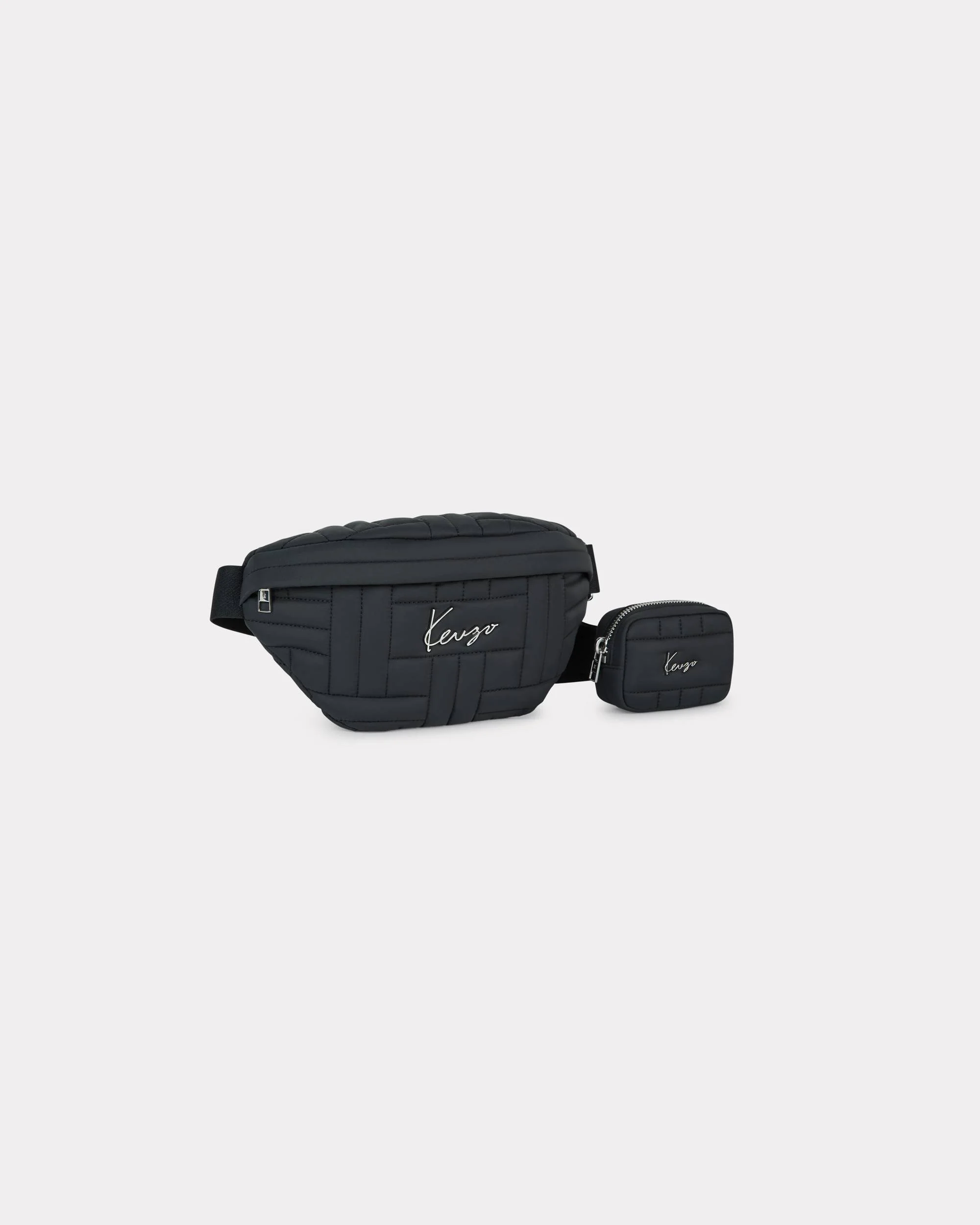 'KENZO Cosy' belt bag. Carried as a belt bag or crossbody-carried. Adjustable belt. Zip fastener. 1 outside detachable pouch with 2 press studs. 1 inside flat pocket. 'KENZO Weave' pattern. Handwritten 'KENZO' signature in metal. Product Reference: FF62SA717F03.99.TU SIZE & FIT Dimensions : 26.5 x 15.5 x 8.8 cm. Adjustable belt. Waist size: max 125 cm. COMPOSITION & CARE Made in China 100% nylon