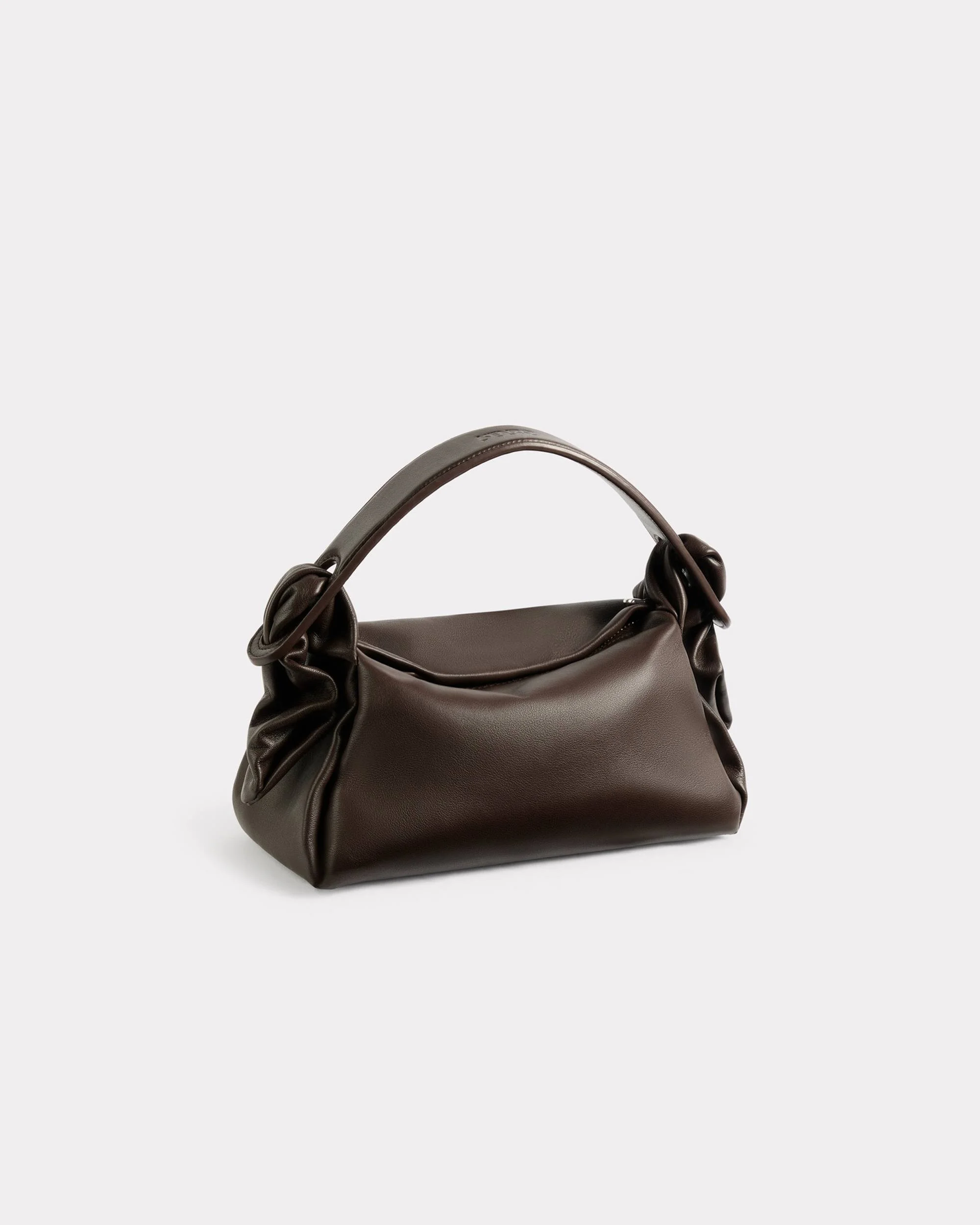 An homage to the eponymous Japanese wrapping technique, this crossbody Furoshiki bag is a new interpretation of the model first seen on the Autumn-Winter 2024 catwalk. Made from supple Italian leather that evokes the fluid texture of traditional fabrics, it reproduces the knots and folds of this age-old tradition. 'KENZO Furoshiki' bag in leather. Crossbody-carried, hand-carried or shoulder-carried. Adjustable and detachable strap. Zip fastener. 1 inside card case. Embossed 'KENZO Paris' logo on the top handle. Product Reference: FE62SA818L01.91.TU SIZE & FIT Dimensions: 25 x 15 x 15 cm. Adjustable and detachable strap. Strap drop length: from 49 to 60 cm. Top handle: 9 cm drop. COMPOSITION & CARE Made in Spain 100% cow leather Do not bleach Do not dry-clean Do not iron Do not dry Do not tumble dry Do not wash Do not wet-clean