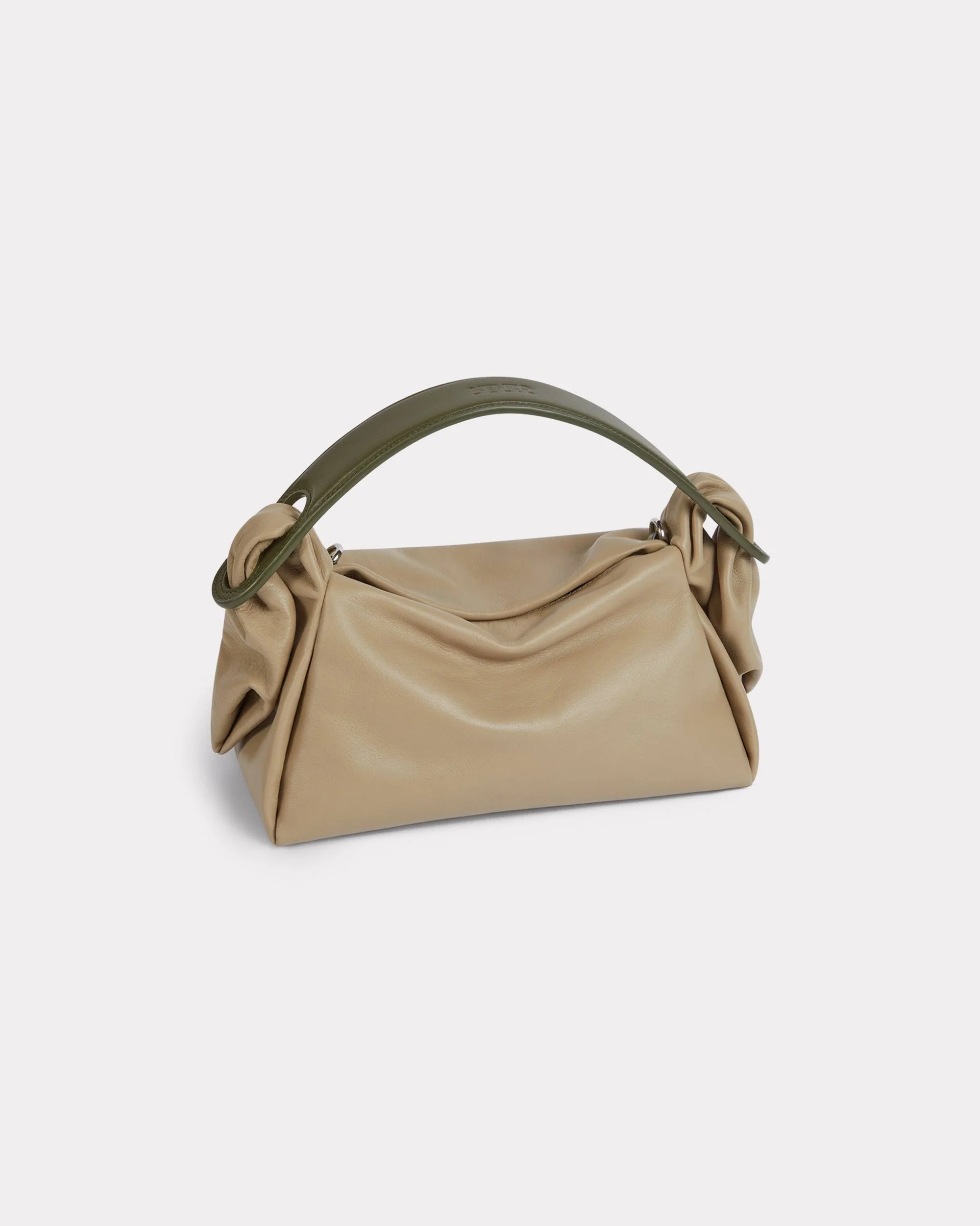 First seen on the Autumn/Winter 2024 catwalk, the KENZO FUROSHIKI bag is inspired by the Japanese packaging technique known as furoshiki. It features the knots and folds inherent in this ancient art and the suppleness of its leather is reminiscent of the traditional technique's flowing fabric. 'KENZO Furoshiki' bag in leather. Crossbody-carried or hand-carried. Adjustable and detachable strap. Zip fastener. 1 inside card case. Embossed 'KENZO Paris' logo on the top handle. Product Reference: FF52SA818L1B.11.TU SIZE & FIT Dimensions : 25 x 15 x 15 cm. Strap drop length: from 49 to 60 cm. Top handle : 9cm drop. COMPOSITION & CARE Made in Spain 100% cow leather Do not bleach Do not dry-clean Do not iron Do not dry Do not tumble dry Do not wash Do not wet-clean