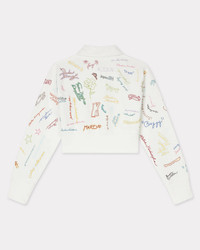 'KENZO Graduation' embroidered cropped polo sweatshirt. Light Brushed Molleton. All over embroidered signatures. Seasonal branding embroidered in the artwork. Product Reference: FF62SW5564MR.02 SIZE & FIT The model is 175 cm tall and is wearing size S. Cropped length. COMPOSITION & CARE Made in Portugal 87% cotton, 13% polyester Do not bleach Do not dry-clean Iron at low temperature Flat drying in the shade Do not tumble dry 30°C very mild fine wash Very mild professional wet-cleaning