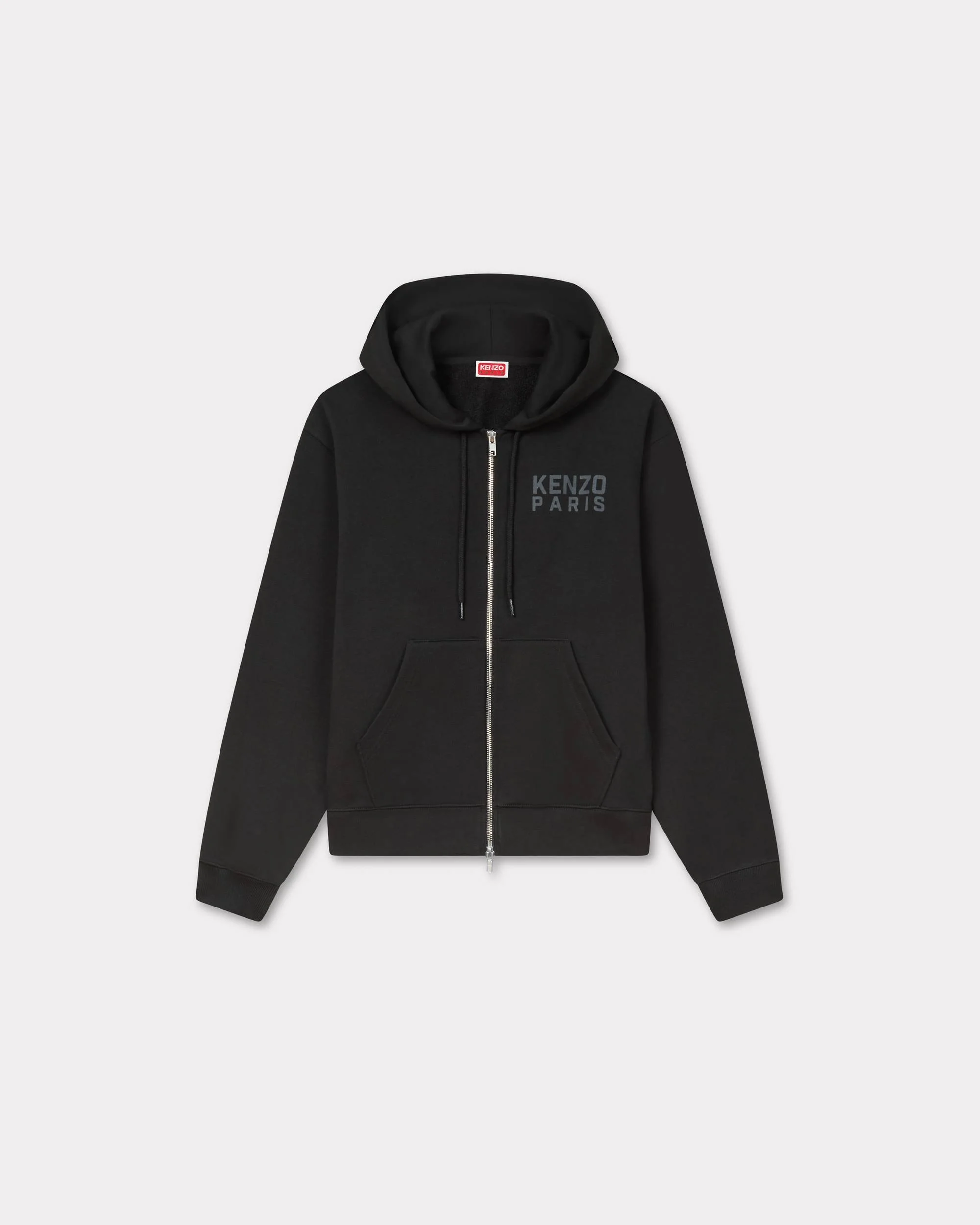 'KENZO Happy Tiger' zip-up hoodie. Light soft unbrushed molleton. Kangaroo pocket. Printed back placed ‘Happy Tiger’. ‘'KENZO Paris' branding printed at chest. Product Reference: FF62HO2504MF.99J SIZE & FIT The model is 175 cm tall and is wearing size S. Regular fit. COMPOSITION & CARE Made in Portugal 100% cotton Very mild professional wet-cleaning